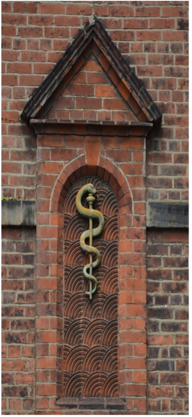 Why is there a staff with a serpent coiled around it on the wall of JHP at 17 Osborne Road?